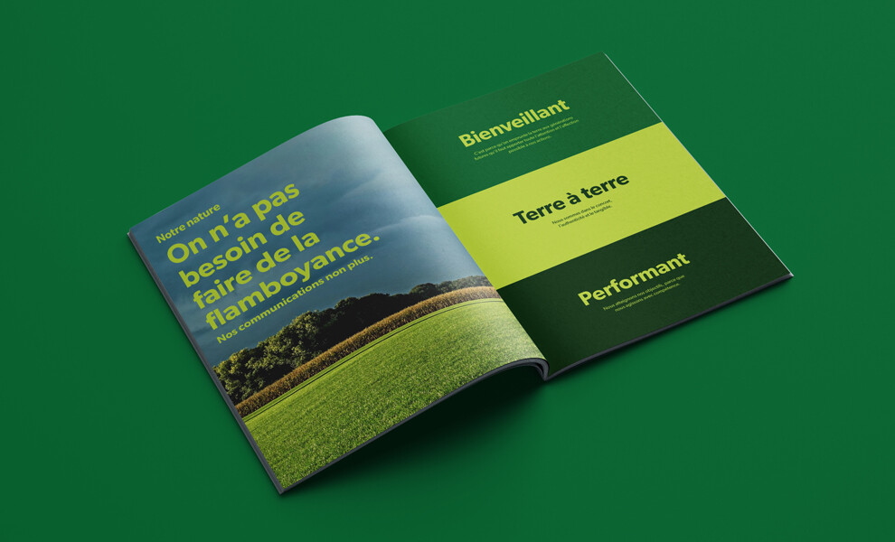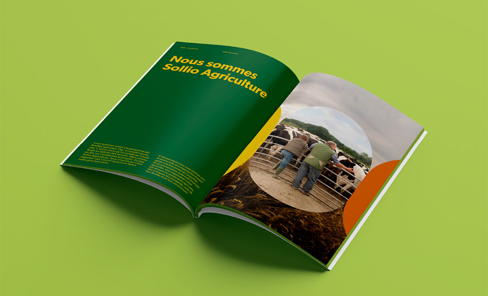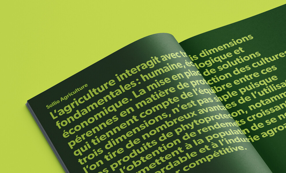 La Coop fédérée becomes Sollio, Cooperative Group. We had to update the logo, with its rich history, while keeping in mind the down-to-earth nature of those who feed us. Furthermore, we had to inspire change in order to reflect today’s reality and safeguard prosperity for generations to come. We listened to producers, employees, and over 40 agronomists and technologists to stimulate our thinking process and ensure we properly represent the situation of farmers today. At the heart of the new logo are the furrows of a field, a nod to the previous logo, the rays of the sun and the rotation of the Earth. The logo evokes three fingerprints coming together as one, symbolizing the community of people working hand in hand towards a sustainable future. We’ve also humanized the platform, anchoring it in values of solidarity — a simple font, straightforward imagery and a colour palette straddling night and day.